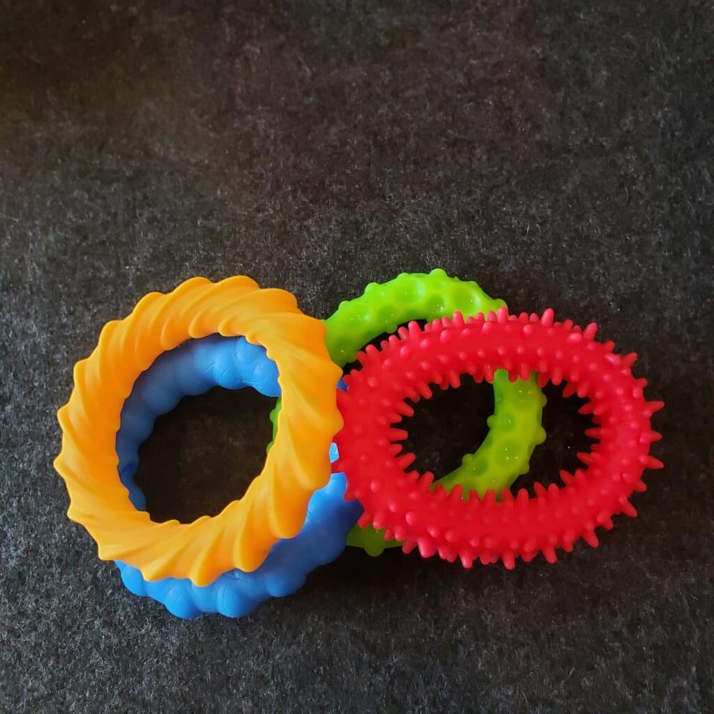 Satisfaction – Is the toy enjoyable and stimulating to use? How well does it keep hands occupied? Are there different ways to play with and configure it? Toys that can be used in many ways scored higher here.